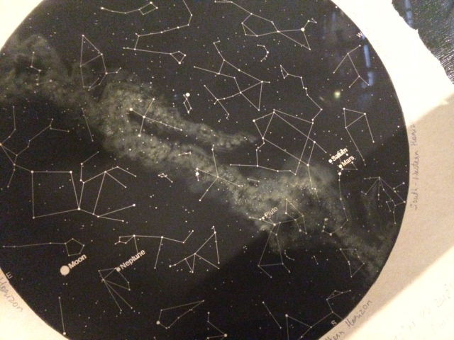 *☆*☆*☆ 一階の中央部分に星座図の展示がありました。火星と土星の合が今年の8月にありその展示もありました。ホロスコープを作ってみると双子座(月)、魚座(海王星)、射手座(火星、土星)の柔軟宮のTスクエアができました☆