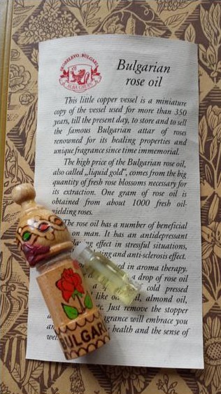 ローズオイルの小さいボトルは木のケースに入っていて蝋(ろう)で封印されていました。
