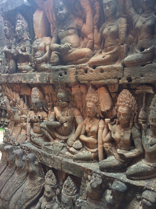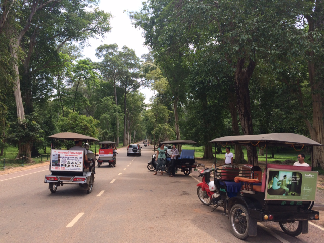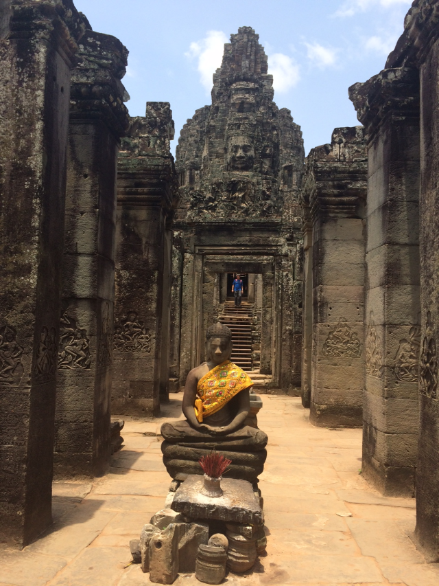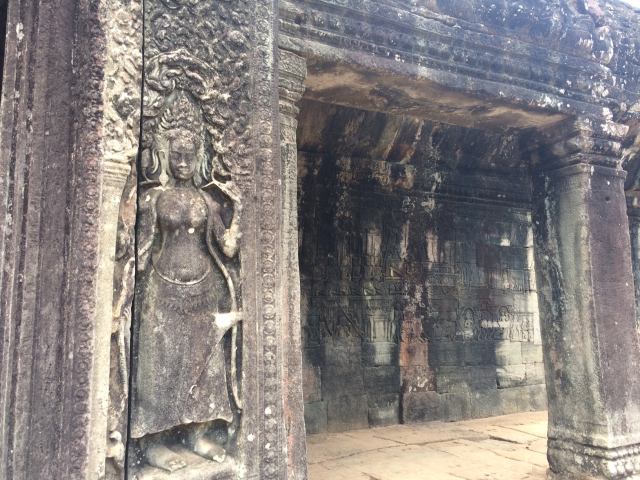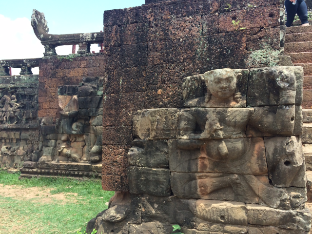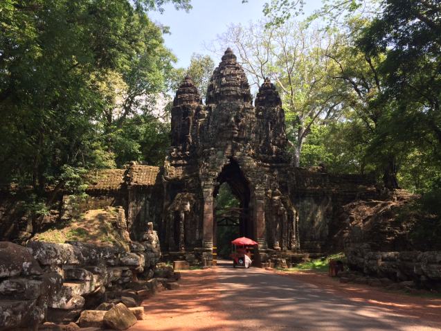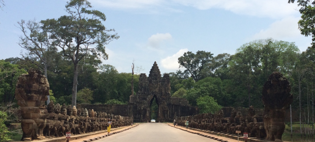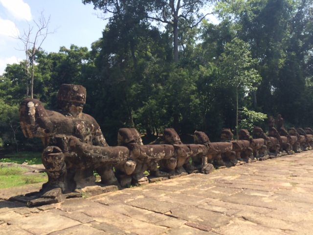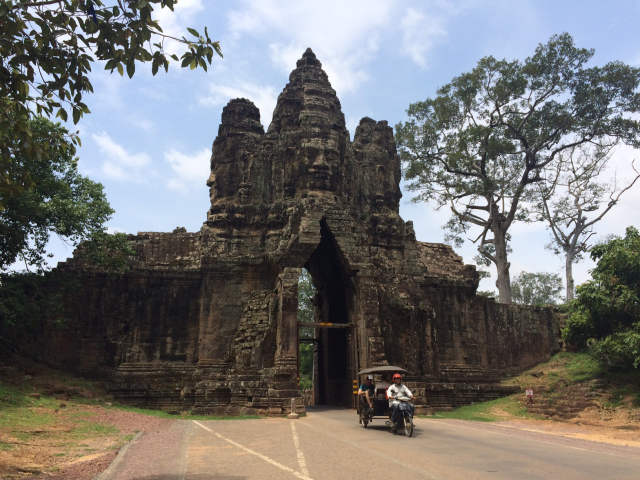三日目はまたアンコール遺跡群を見て回れる一日券をチケットセンターまで購入しに行き③アンコール・トムのSouth Gateから入りました。上の写真は南門です。門の入口もその裏にも大きい顔が彫刻されています。門からBayonと呼ばれる神殿まで約1㎞強あります。今回はSouth Gate → Bayon → Baphuon → Phimeanakas → Elephants Terrace → North Gateの順で回りました。