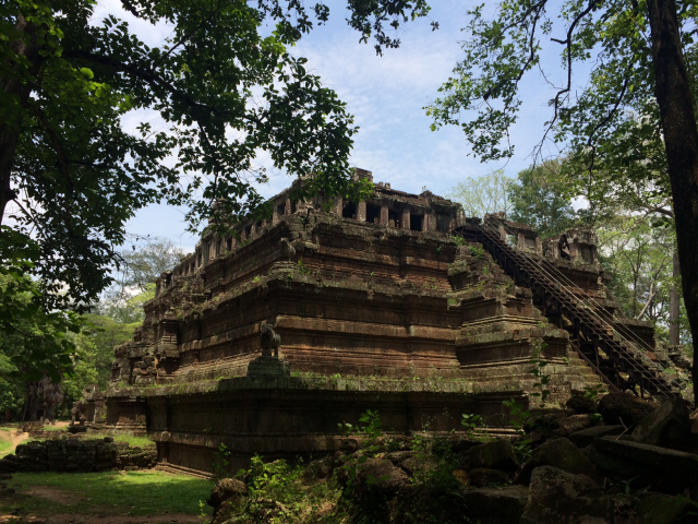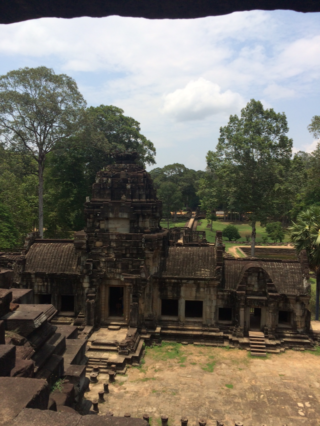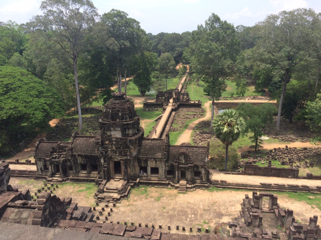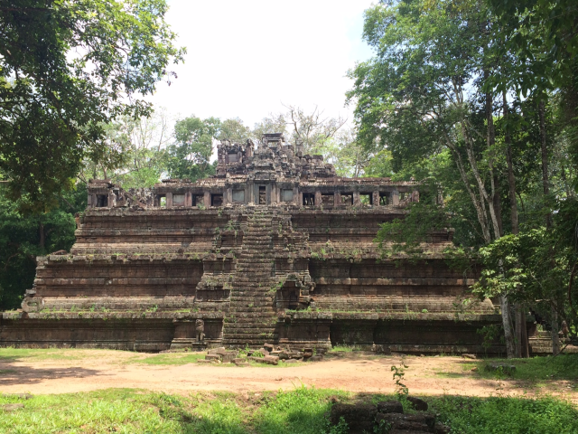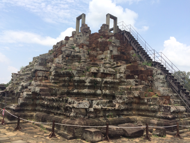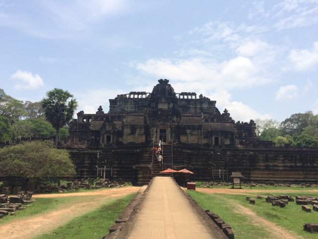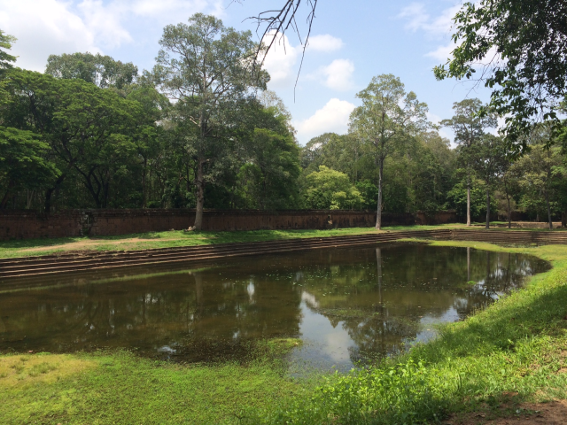 次はBaphuon (バプーオン)まで行きました。西側の奥の方にあります。この北側の池の近くにあるピラミッド型の建造物がPhimeanakas (ピミアナカス)です。