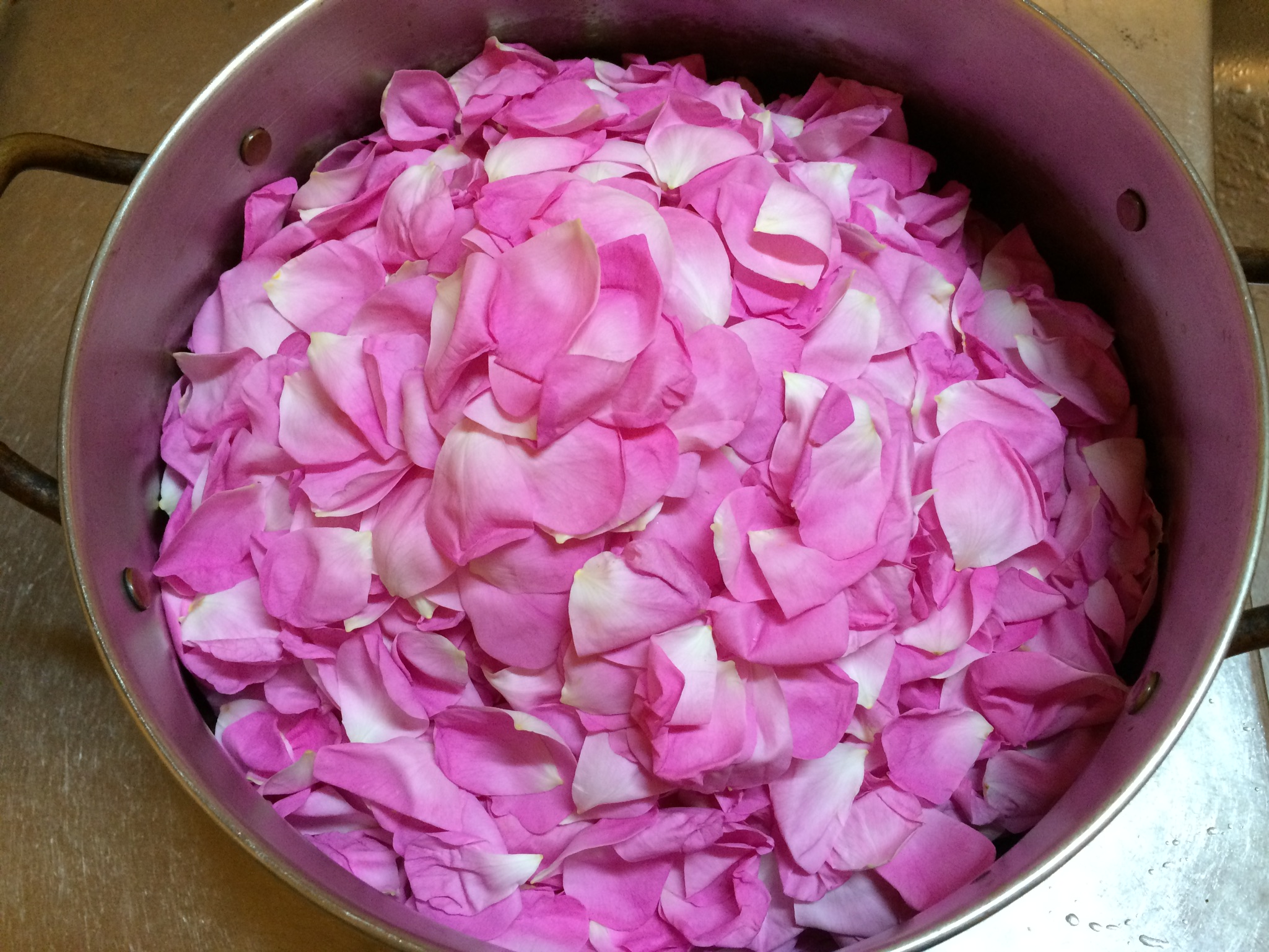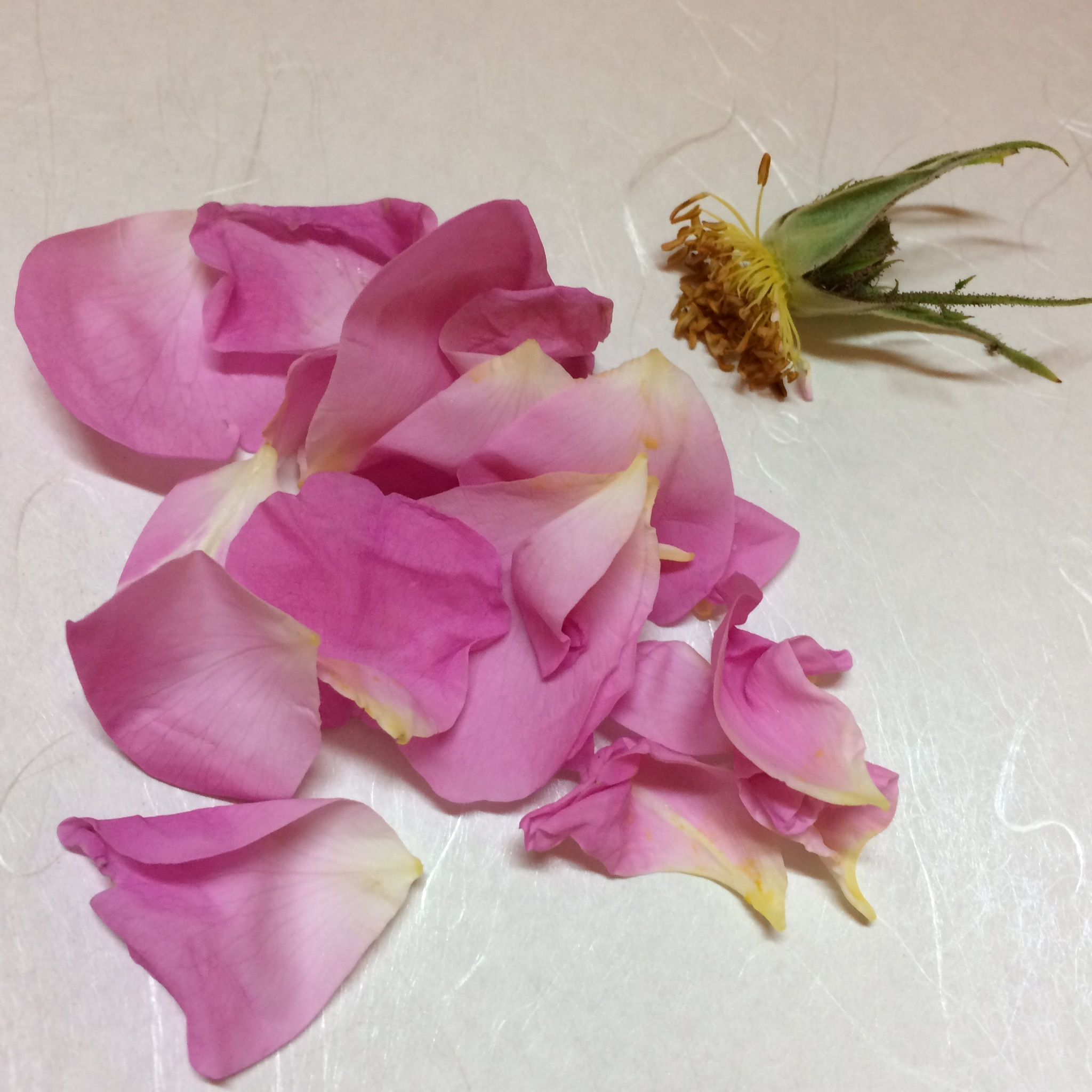 家に帰ってからバラジャム作りをしました。花びらだけを使うのでガクと花粉を取り除きます。花びらを片手で包み込みもう片方の手でガクを一気に引っ張ると綺麗に花びらが取れます。この時に花びらに花粉がつかないように気をつけます。ポプリなどにする時は花びらが黄色くなって綺麗なピンク色になりません。そして虫が付いていると使えないので目を凝らして選別します。この作業が一番時間がかかりました。