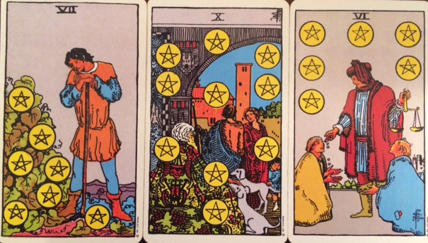 ④ タロット 小アルカナ ペンタクルスの7・10・6に置き換えてみました。
