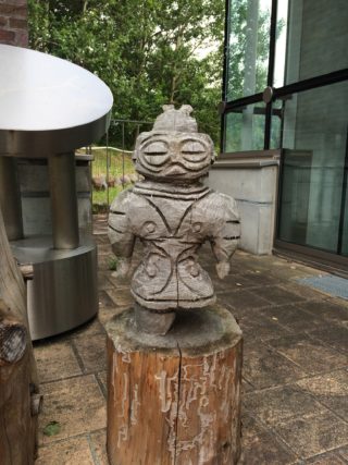 誰が作ったのかな遮光器土偶の木彫り♡片足が無いところも似てますね。本物は亀ヶ岡石器時代遺跡から発掘されました。